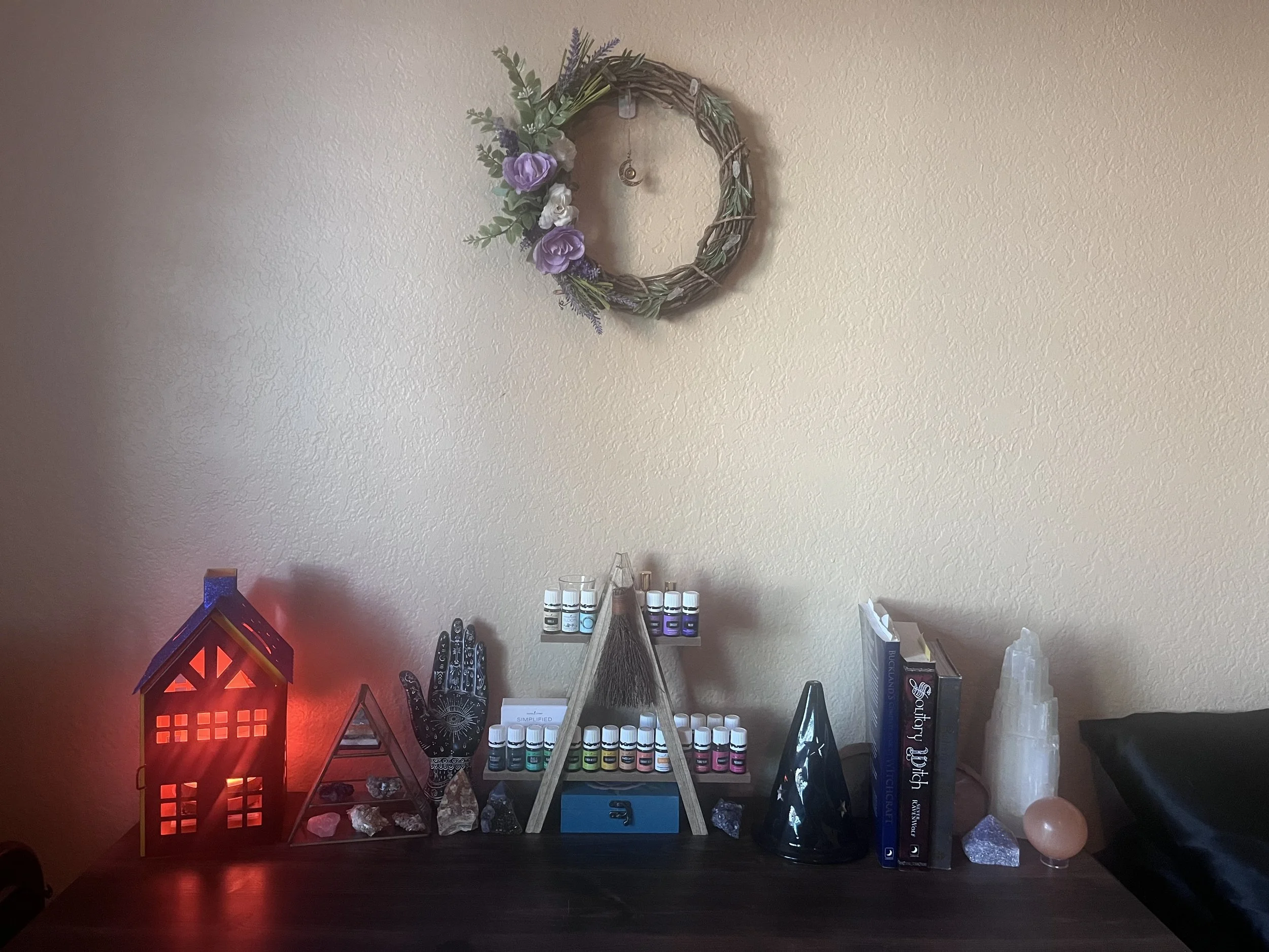 Elizabeth Hernández, 31, se ha considerado una bruja solitaria por tres años. Su interés creció cuando comenzó a envolver cristales con alambre lo que le abrió las puertas para profundizar su interés en el paganismo. Como bruja solitaria, puede incorporar diferentes caminos en su práctica hasta que encuentre un grupo de brujas (un aquelarre) con el que le gustaría trabajar.