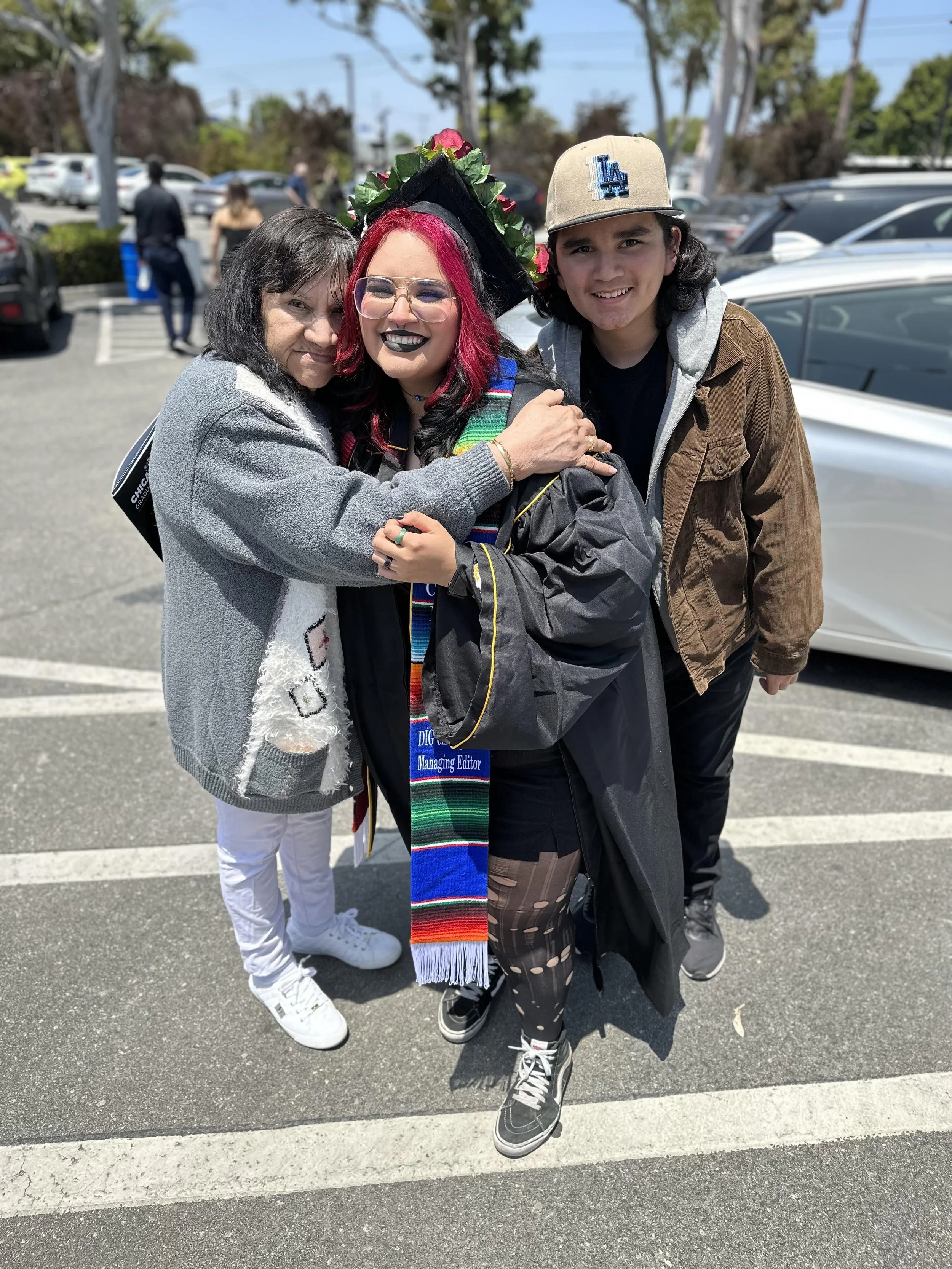 To be completely transparent, I was supposed to attend the University of Oregon, but decided to stay home in East L.A. to help me/my family save money. It was hard, but I knew it would be for the best because, looking back now, I would not be who I am today, without my loved ones, who are sitting in the bleachers today; they know exactly who they are and I love them so much, without staying, I wouldn’t be, what I like to call myself, an Emo journalist, una periodista rockera. like the meme “Soy rockera como Alejandra Guzman!”