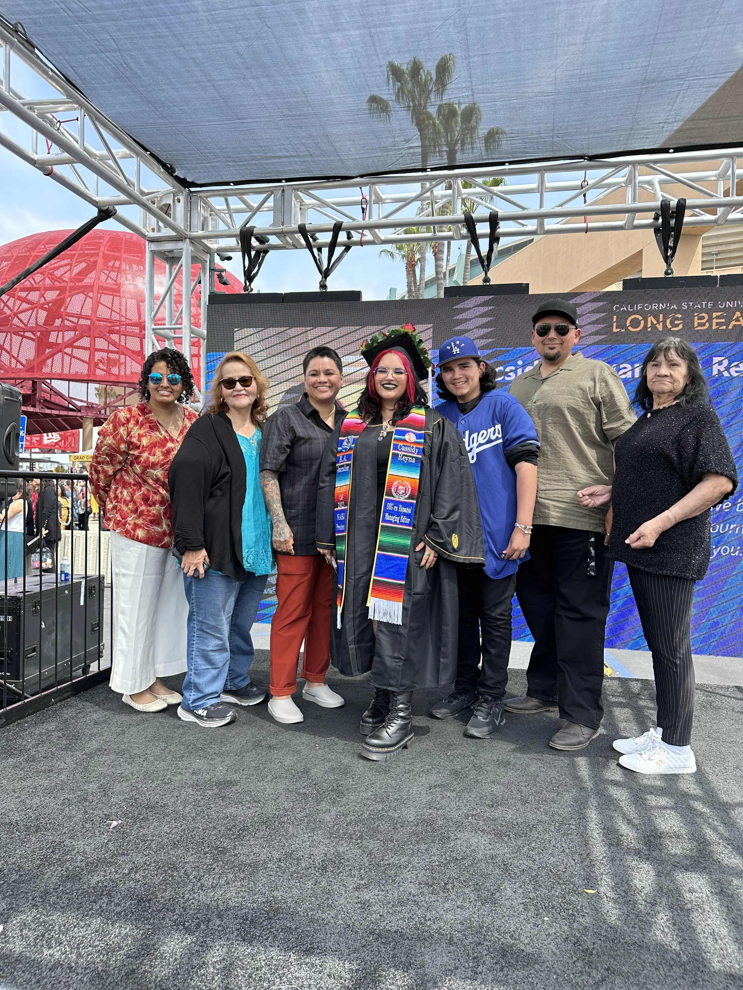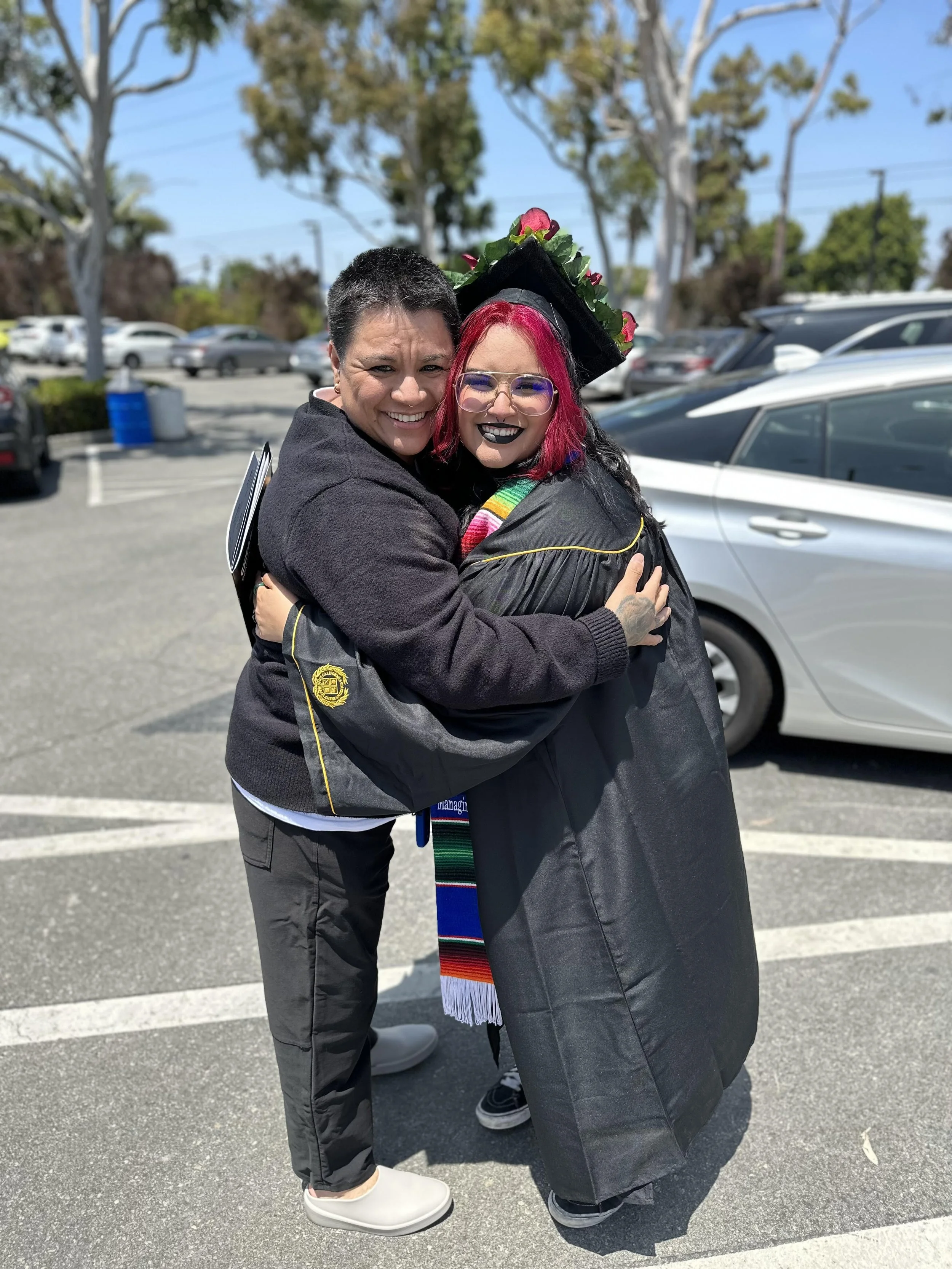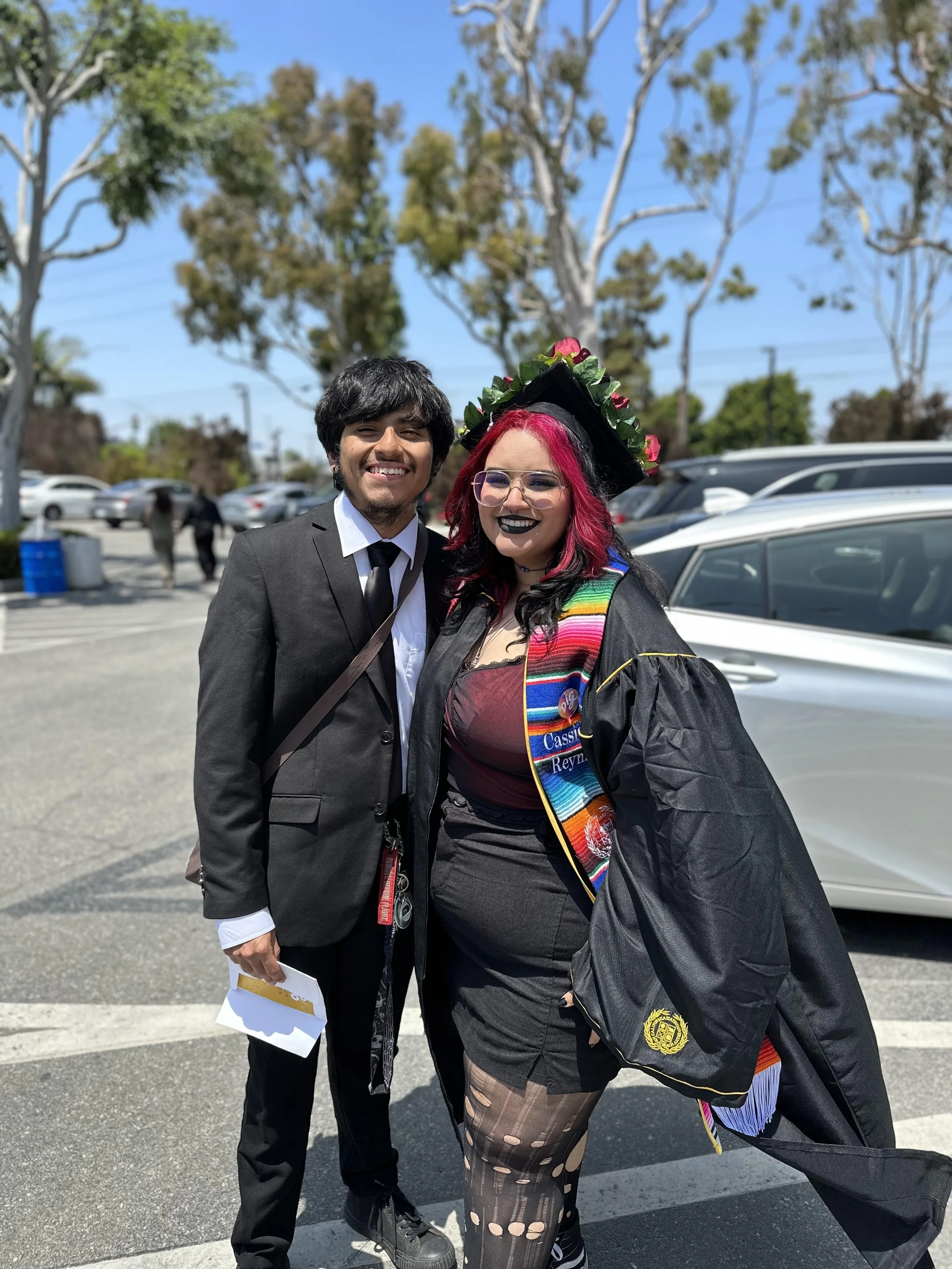 Cassidy Reyna pictured with their partner outside of their graduation ceremony at Cal State Long Beach. Photo Credits: Cassidy Reyna